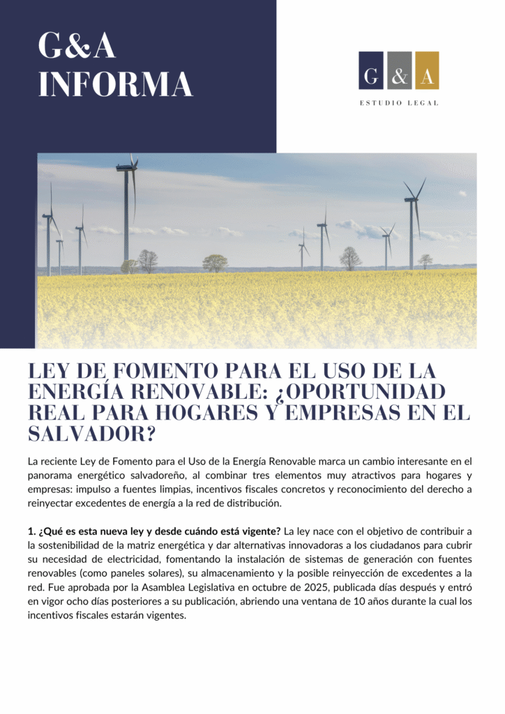 Ley de Fomento para el Uso de la Energía Renovable: ¿oportunidad real para hogares y empresas en El Salvador?